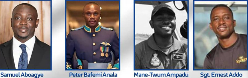 The Air Force personnel involved in the crash were Squadron Leader Peter Bafemi Anala and Flying Officer Manin Twum-Ampadu. Additionally, Sergeant Ernest Addo Mensah was also among them.