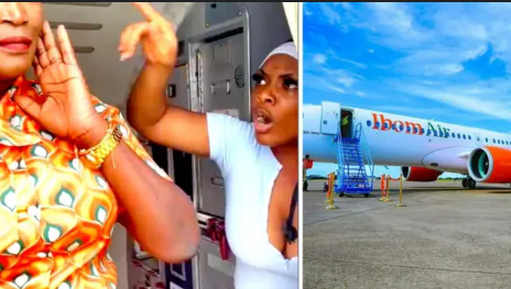 L-R: Ibom Airline Air hostess being slapped by Comfort Emmanson during a flight from Uyo to Lagos