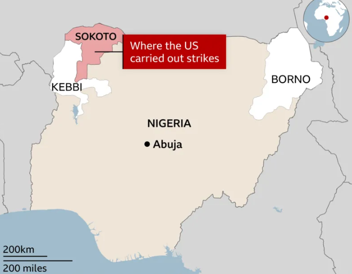 On Christmas Day, the United States, with the assistance and approval of President Bola Tinubu, launched targeted strikes on terrorist locations in Sokoto State, Nigeria. The operation aimed to dismantle extremist networks threatening regional stability and freedom of worship. These strikes focused on key strongholds used by terrorist groups in the region, which have been described as effective.